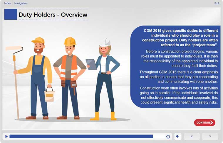 This online course should be completed by those who are involved in the planning, managing and the safety of workers on construction sites. Ideal for those who need guidance when becoming or currently are a designated duty holder under CDM 2015, roles such as project and construction managers and site supervisors will benefit from this taking this course.