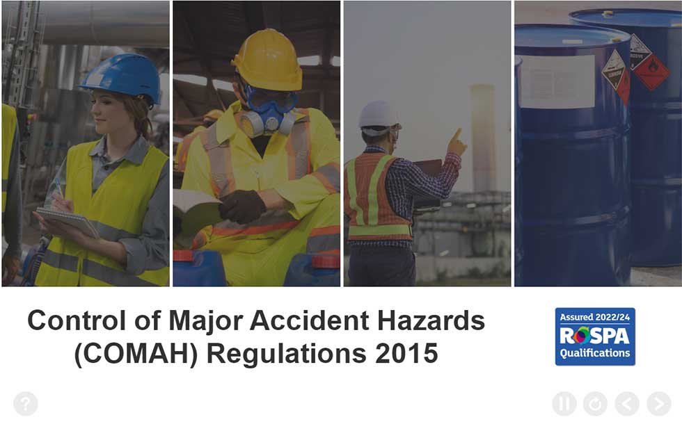 Learn what the COMAH Regulations are, what a dangerous substance is, what is classed as major accident. You will also cover, General Operator Duties at COMAH sites, lower and upper tier sites and enforcement and penalties.